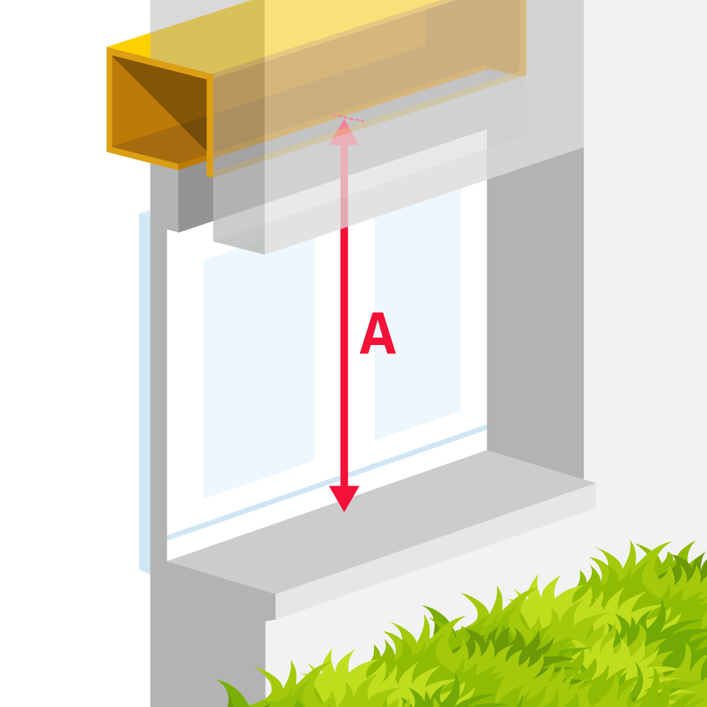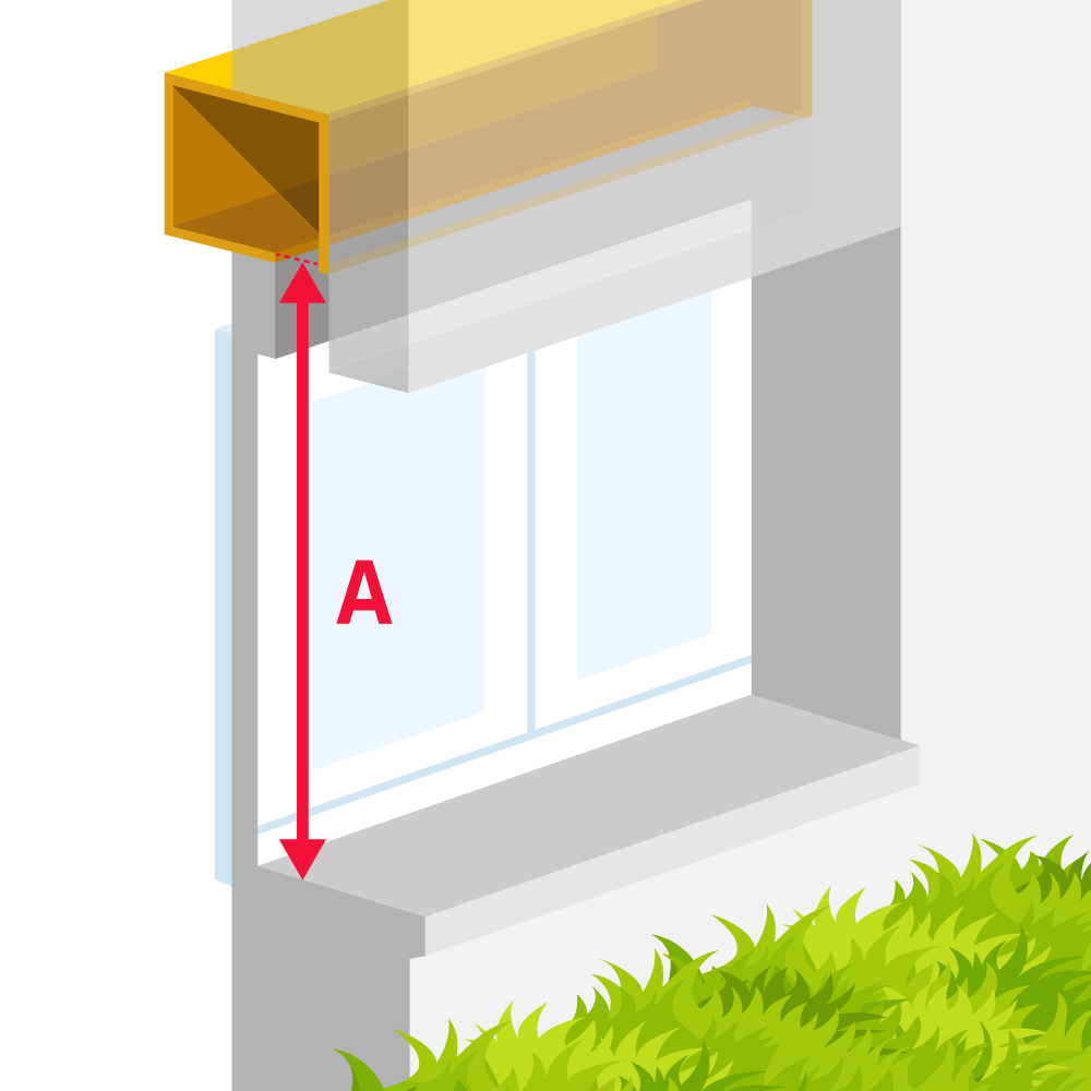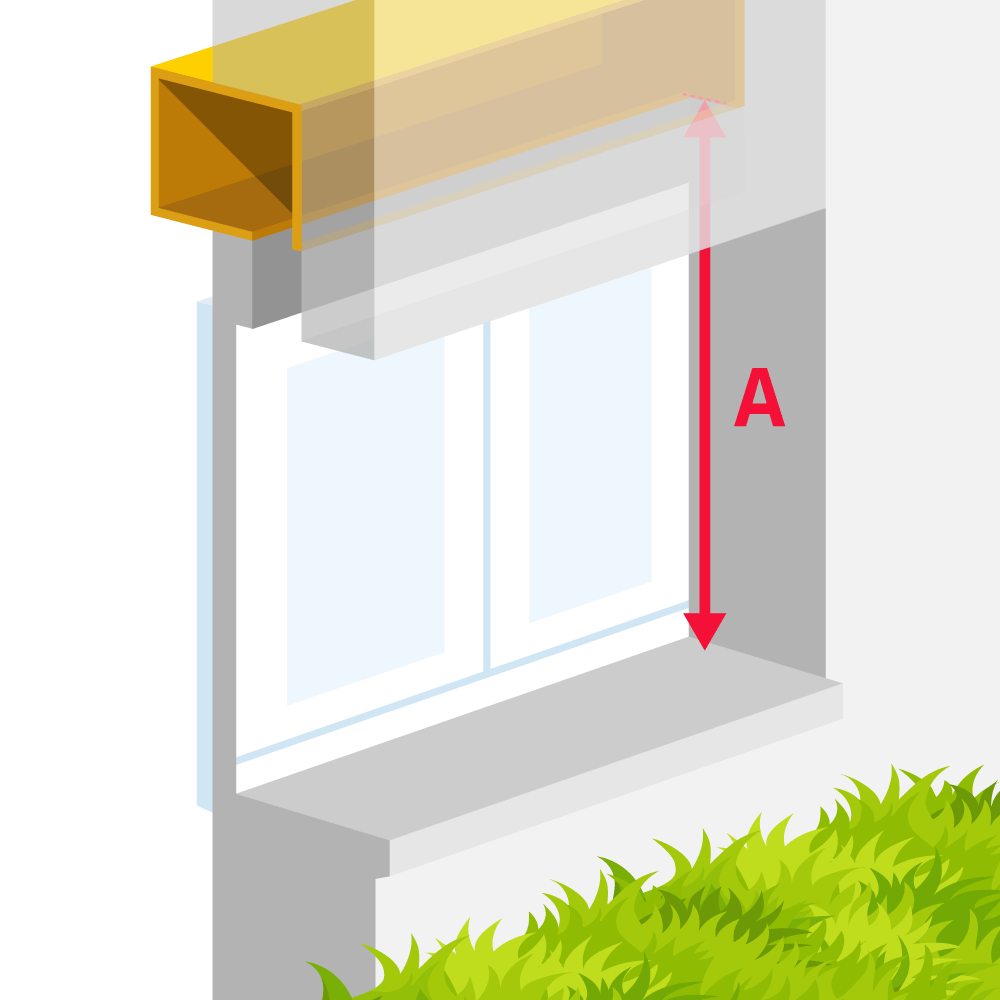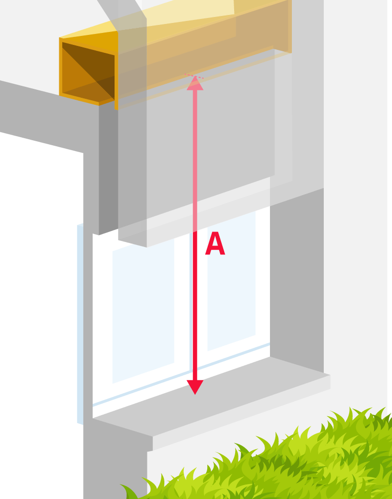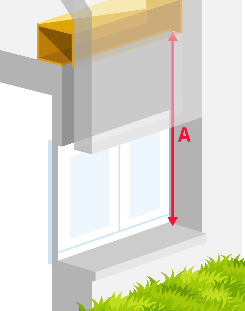 Pour la hauteur (A), mesurer la hauteur entre le bas du tableau de maçonnerie et le bas du coffrage existant en passant par la saignée prévue pour le passage de tablier du volet.