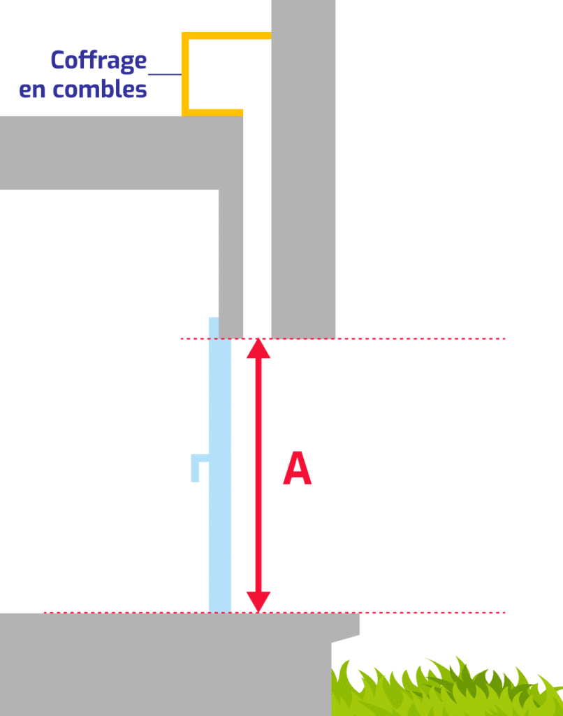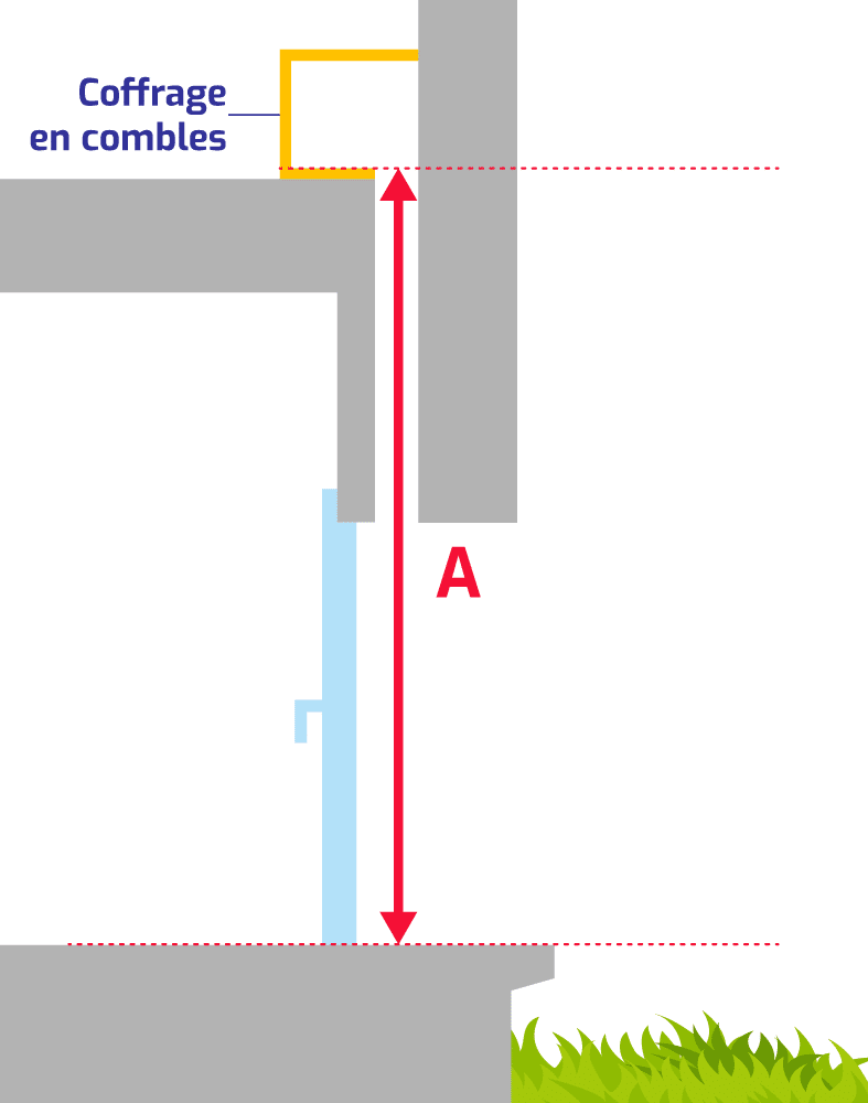 - Mesurer la hauteur totale jusqu'au coffre en combles (A) :