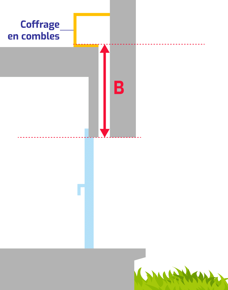 - Mesurer la distance entre le coffre en combles et le haut de la maçonnerie (B) :