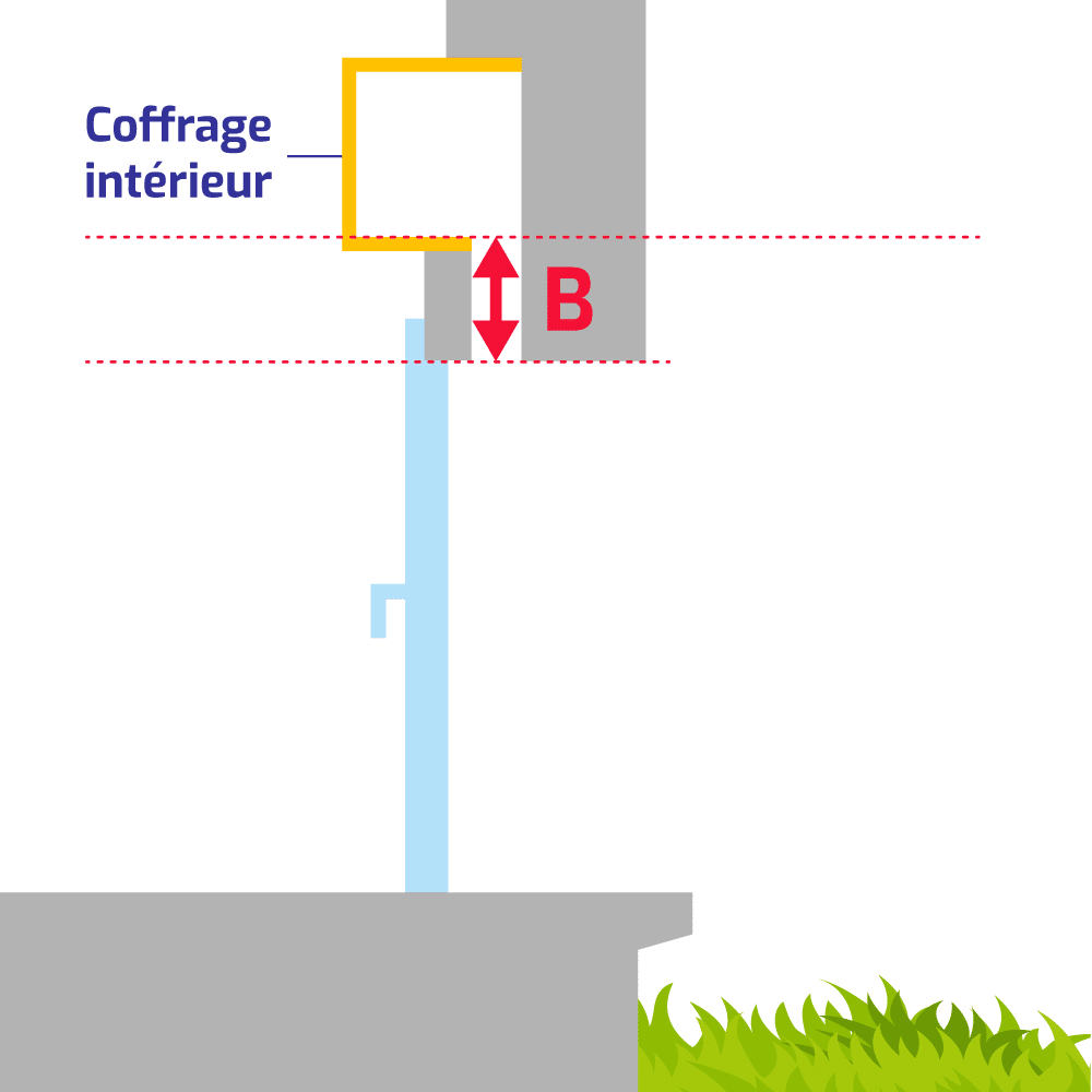 - Mesurer la distance entre le coffrage intérieur et le haut de la maçonnerie (B) :