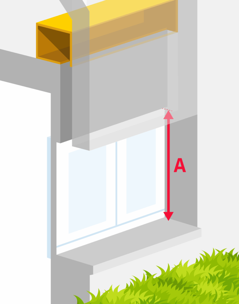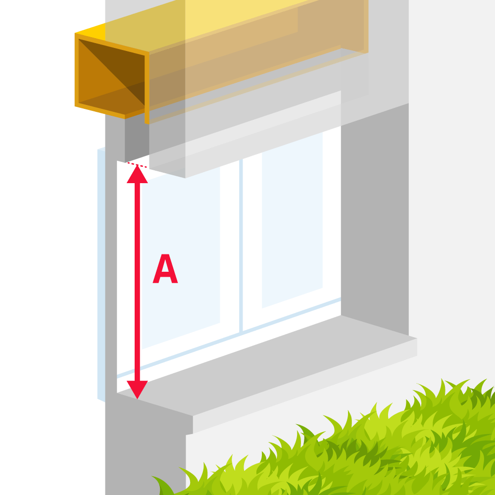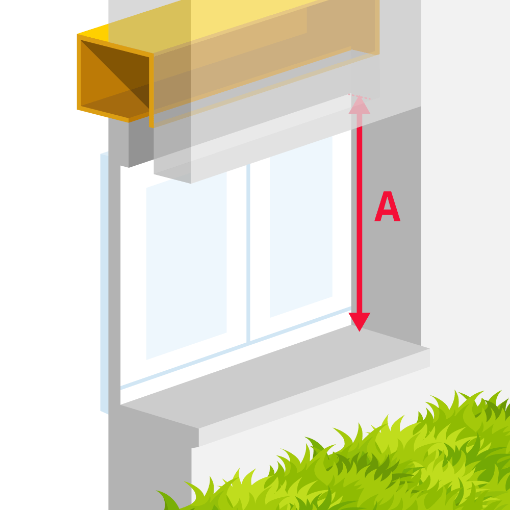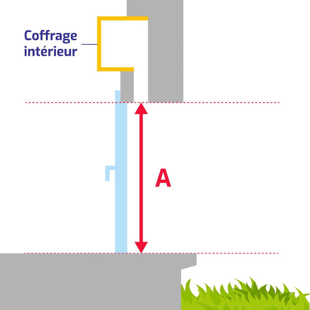 Pour la hauteur (A), mesurer la hauteur entre le bas du tableau de maçonnerie et la sous-face du coffre-tunnel existant.